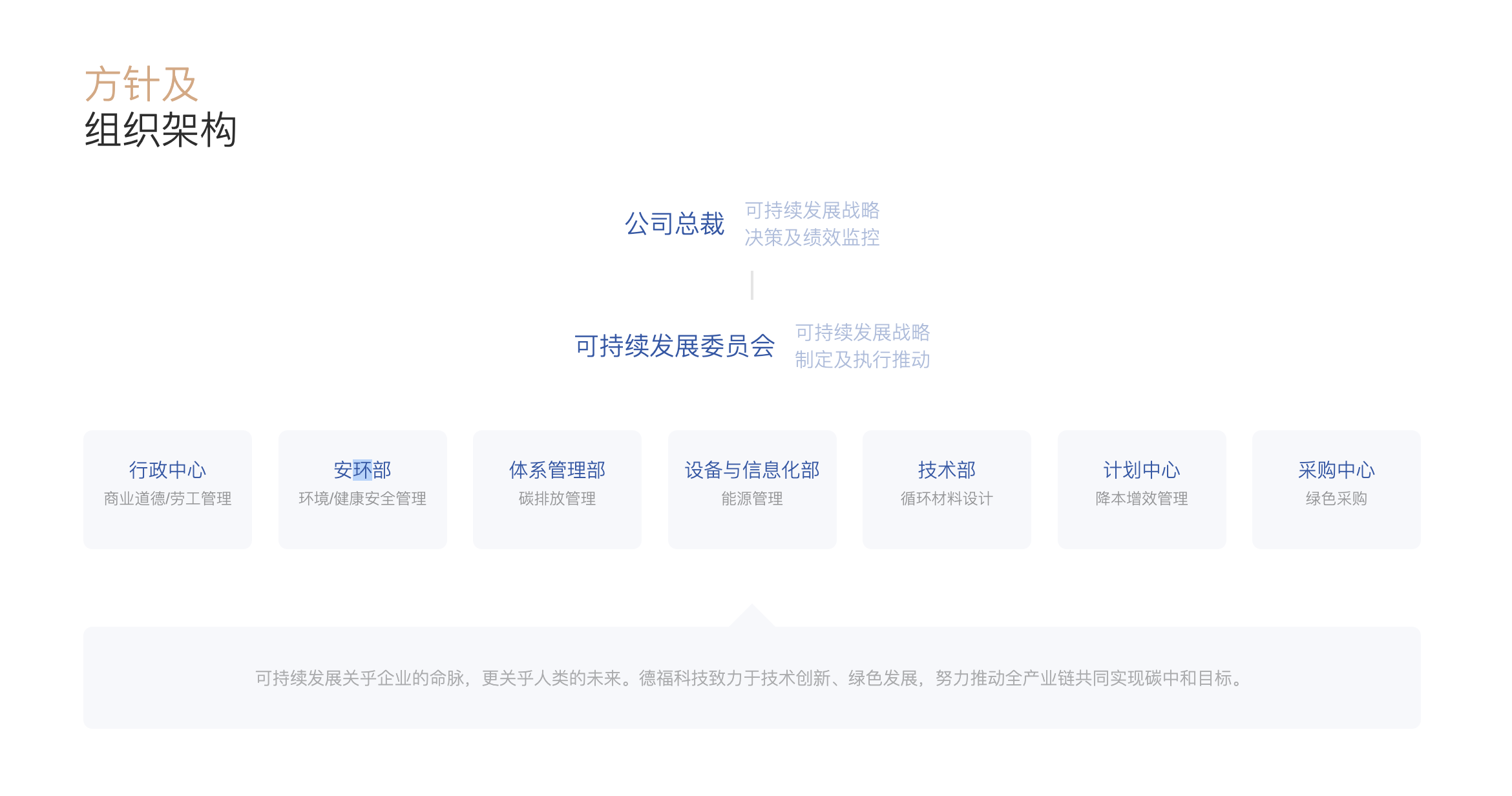 公司制定中长期减排行动计划,最终以实现二氧化碳委排放为目标。每年审查评价温室气体排放量及产品碳足迹,并出具声明报告。通过技术创新手段减少碳排放及能源的消耗使用,最大限度的利用可再生能源以及可回收材料,提升能源利用效率和管理水平,构建清洁、低碳的能源供应体系。